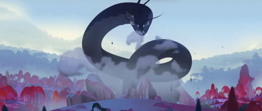 Their conversation is interrupted by Eyvind who, with his spell-weaving, manages to pierce open the Serpent and rescue Juno, the Serpent fleeing out of sight. It is then clear to them that they’re no longer making the caravan safe– they’re attracting danger to it. So they resolve to leave and, in the process, seek out the root of the Darkness pouring into the land. They imply to the Hero that Juno and Eyvind have some unspecified connection to it, and they’re the ones that can make it right, but they want Iver (the Hero’s closest ally/best friend) to go with them.