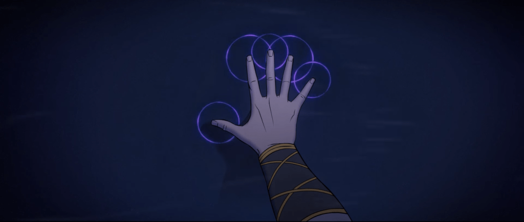 You can hear the main theme appear throughout all the chapters with the Hero as the POV character, initially during the various travelling cues for the caravan, like at 0:47 into Faces to the Wind, then later during key events in the story, such as when Iver leaves the caravan to join Juno and Eyvind to stop the Darkness, a moment scored by the cue starting at 1:27 into Paths Part (more on that and later events of the story in a bit).